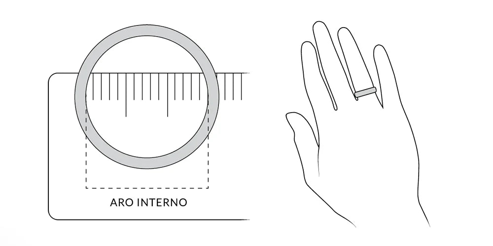 Para escolher o tamanho certo, mede o diâmetro interno de um anel que já uses ou o perímetro do dedo.
