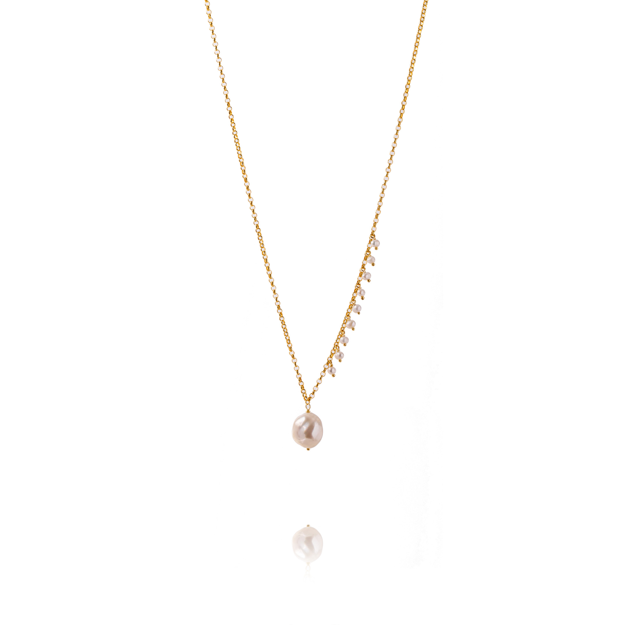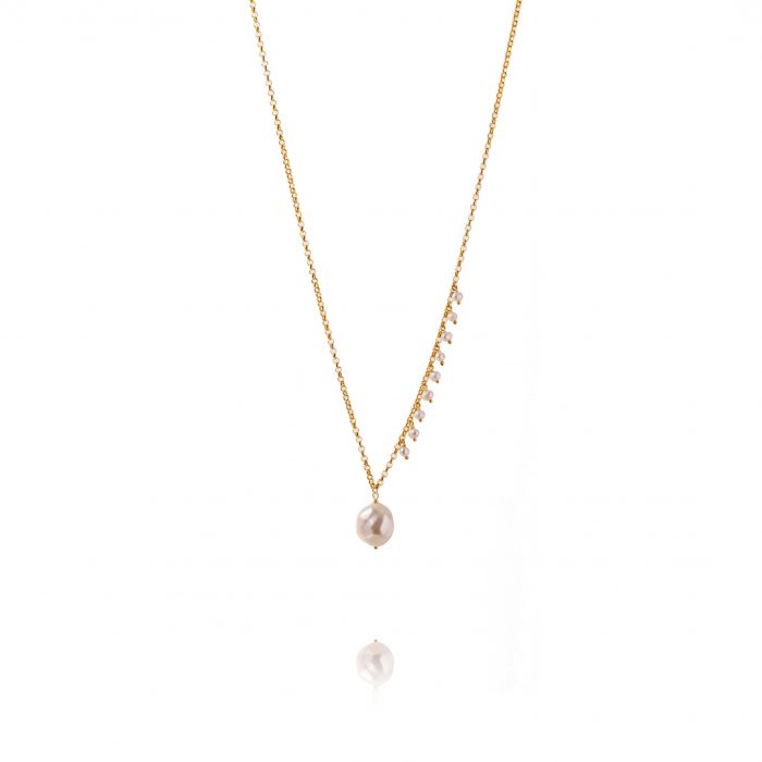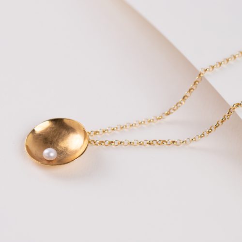 Fio de prata dourada e perola