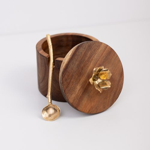Taça em madeira com aplicação em latão com banho de ouro.